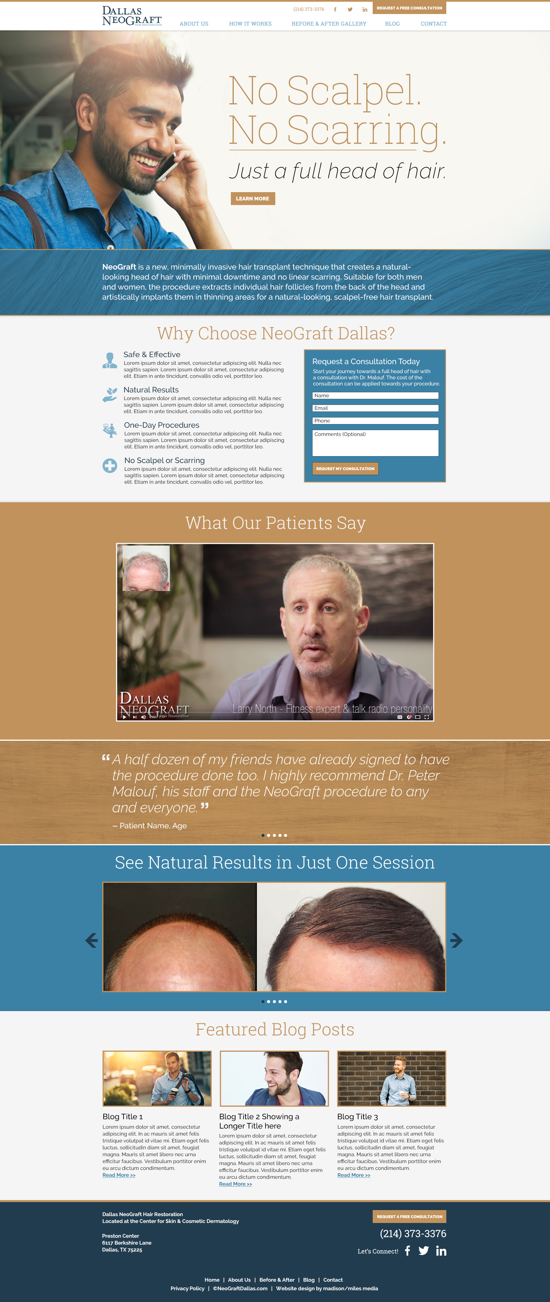 Website design for US Dermatology Partners and their subsidiary, Dallas NeoGraft. Websites developed by Laura Kajpust.